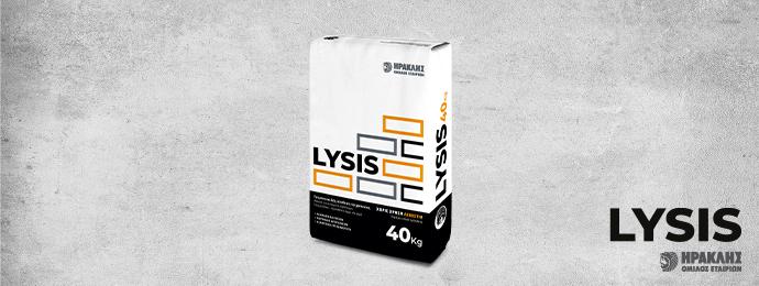 Η τσιμεντοειδής σύνθεση τοιχοποιίας LYSIS δίνει τη λύση για μεγαλύτερη ασφάλεια, ευκολία και κορυφαίο αποτέλεσμα, χωρίς τη χρήση ασβέστη. Πρόκειται για προϊόν με βελτιωμένη απόδοση αειφορίας τόσο κατά τη διαδικασία παραγωγής όσο και κατά την εφαρμογή. Χάρη στην καινοτόμο σύνθεσή του, έχει το χαμηλότερο ανθρακικό (CO2) αποτύπωμα στην ελληνική αγορά μεταξύ αντίστοιχων συνθέσεων.