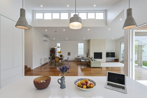Η τάση στη διακόσμηση επιτάσσει κρεμαστά φωτιστικά οροφής μονόφωτα, που μπορούν ιδανικά να κρεμαστούν και τα τρία μαζί.